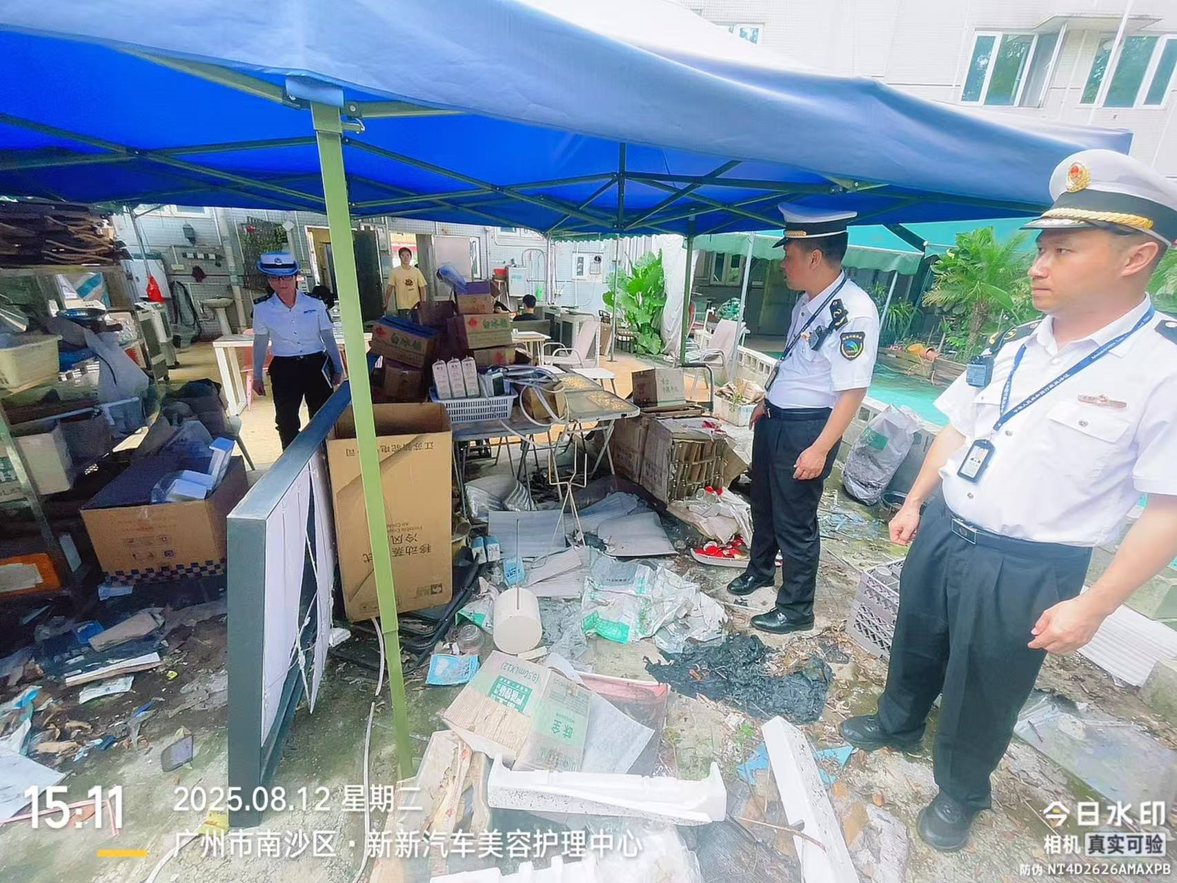 8月11日,南沙区大岗镇综合行政执法大队执法人员例行巡查,发现一临街商铺屋后责任区内垃圾堆放、垃圾散落暴露,垃圾周围蚊虫、苍蝇飞舞,不符合市容环境卫生要求。执法人员现场对店铺出具《责令改正通知书》,责令其限期改正,并进行普法宣传,告知当事人要履行铺前屋后市容环境卫生的主体责任,保持干净整洁。复查时,发现该商铺存在的问题现状依旧。执法人员依据《广州市市容环境卫生管理规定》第五十七条的规定,依法依规对该商铺拒不改正的行为作出400元的行政处罚。