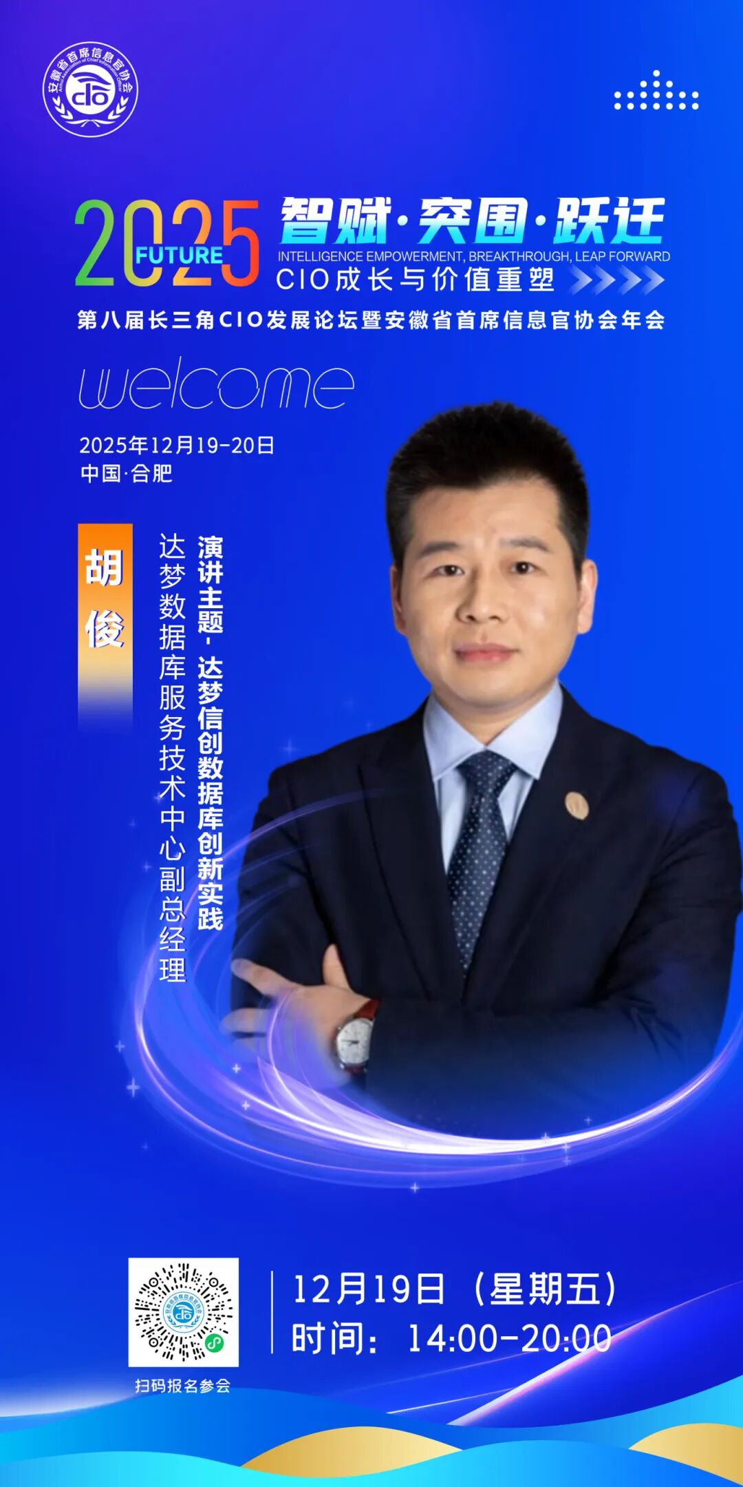 现在,就让我们一同聚焦,提前了解演讲嘉宾风采——达梦数据库服务技术中心副总经理胡俊先生!